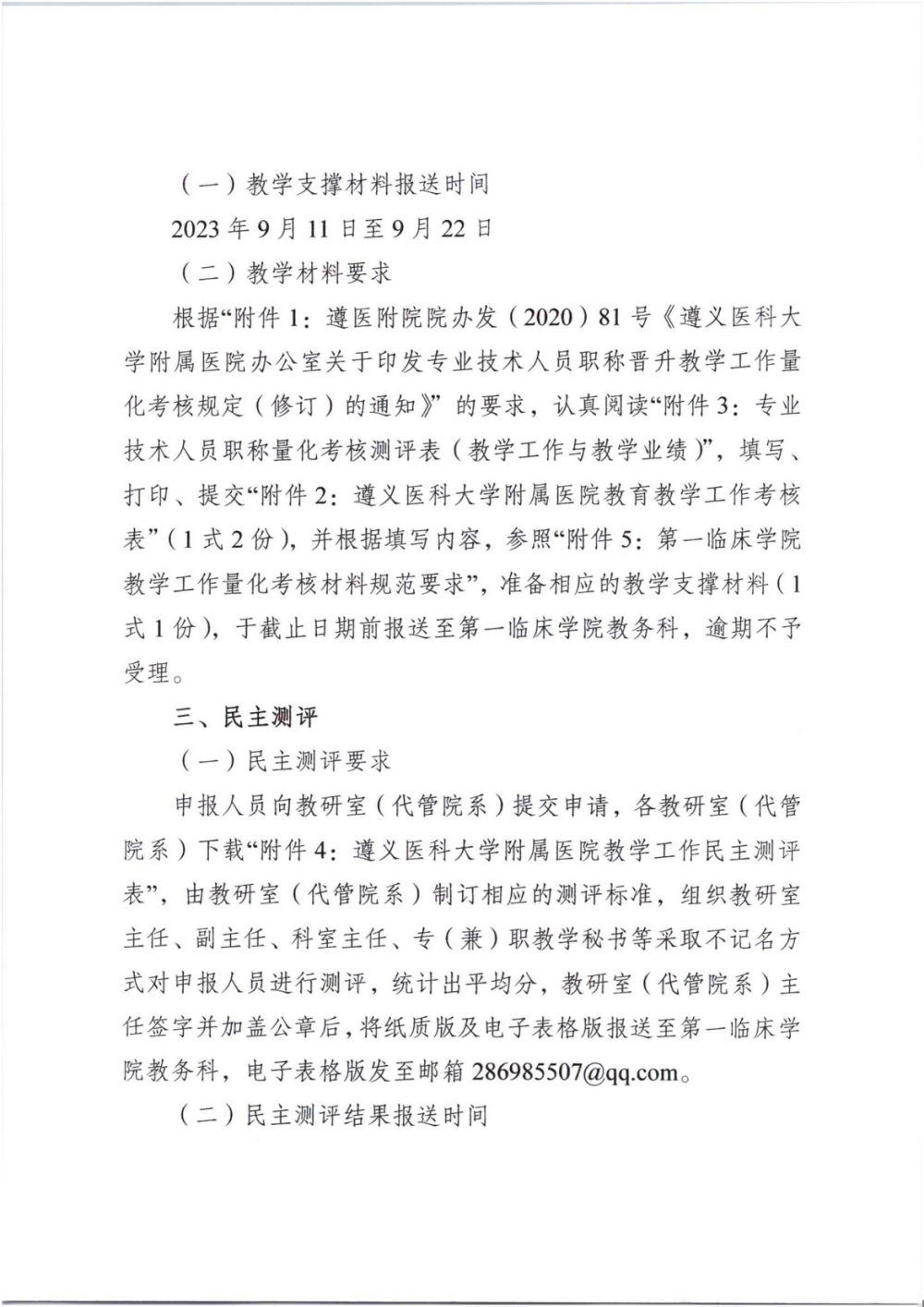 附件1:遵医附院院办发〔2020〕81号文件《必一运动官方网站附属医院办公室关于印发专业技术人员职称晋升教学工作量化考核规定(修订)的通知》.pdf