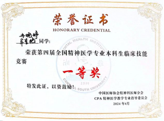 经过激烈角逐,公司精神医学本科生团队(指导老师:彭娟、王智、姜栩恒、魏志杰,员工:牟星艳、冉婉婷)凭借卓越的临床技能、扎实的理论功底和出色的团队协助精神,成功斩获一等奖,由中南大学湘雅二医院精神病学科系主任,中南大学精神卫生研究所所长王小平教授颁奖。