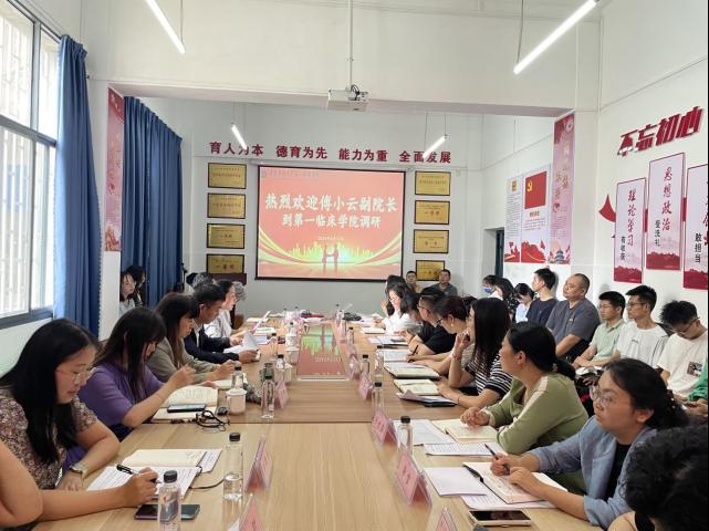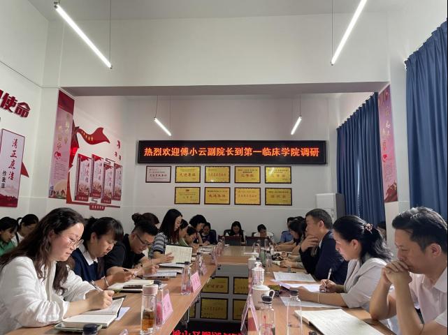 6月12日下午,附属医公司党委委员、副经理傅小云到必一运动官网开展调研,必一运动官网党委副书记、经理王东红,党委副书记杨洪艳,副经理杨敏,全科医公司党总支书记黎飞,经理肖雪,必一运动官网全体职能科室工作人员及全体辅导员参加了调研座谈会。会议由王东红主持。