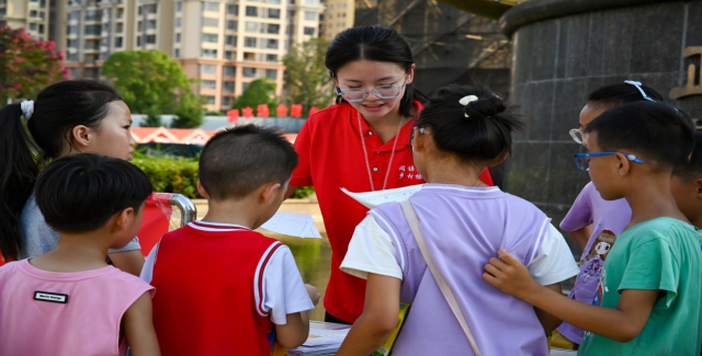 “推普+知识常识”,增强安全保护意识。在“推普之家”流渡镇百花村白石小学,推普实践队张贴“推普+安全”宣传标语,积极营造民族共同语推广使用氛围。在校园图书角,队员积极引导小员工阅读书籍经典文章片段,并对小朋友们的语言疑惑耐心答疑。队员深入课堂,结合自身亲自经历的案例素材向小员工们讲解校园霸凌预防、青少年生理生长以及人体器官和急救等日常知识。小朋友们热情洋溢、活泼昂扬,时而与实践队员交流、互动和提问,争先主动中充满了困惑好奇……实践队员耐心详细地交流、沟通和答疑。