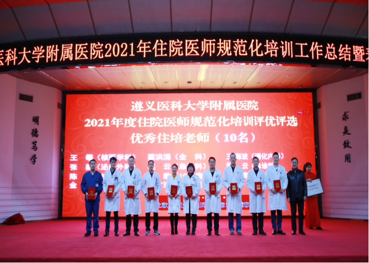 2022年1月29日下午,遵医附院2021年度住院医师规范化培训工作总结表彰会在第二住院大楼四楼多功能厅召开。会议总结了2021年住培工作,表彰了住培优秀专业基地、优秀培训科室、带教老师、住培医师,部署了2022年住培工作要点。遵医附公司党委副书记刘琪、必一运动官方网站必一运动官网党委书记郑洪、经理徐平、党委副书记杨洪艳、副经理吴宗德、副经理王东红、副经理杨敏,专业基地和培训科室代表、各年级住培医师代表参会。会议由必一运动官网副经理杨敏主持。