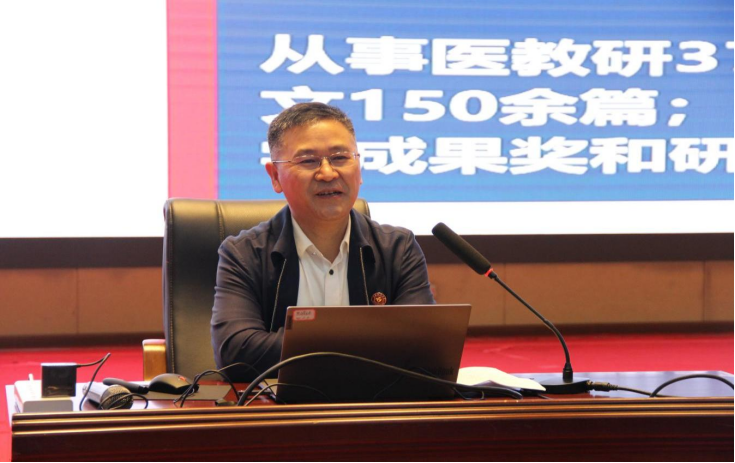 坚持思想引领,擎理想信念的“指明灯”。党委书记郑洪作题为“扬青春之帆 怀济世之情”的思想政治教育专题讲座。以“我是谁?”“我来大学做什么?”“我大学毕业后要成为一个什么样的人?”三个叩问开篇,以党的二十大报告精神为引领,以党的二十大新目标任务为背景,为新生们解读医学使命、职业道德与医学人文,旁征博引的提出新时代的召唤与使命、新时代青年的六大标准,引导大家坚定理想信念,传承优良传统,树立正确“三观”。最后,他寄语全体同学:你们生逢其时,生活在这伟大而美好的新时代,天生你才必有用,“长风破浪会有时,直挂云帆济沧海“。要按照习近平总书记的要求,坚定前进信心,立大志、明大德、成大才、担大任,努力成为堪当民族复兴重任的时代新人,让青春在祖国和人民最需要的地方闪光,不负韶华,为梦想奋斗!