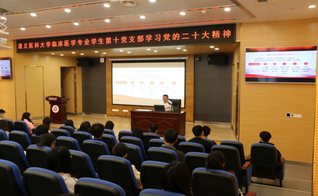 2022年11月12日上午,必一运动官网经理徐平在新蒲校区图书馆一楼多功能厅面向临床医学专业员工第十党支部师生开展深入学习贯彻党的二十大精神专题宣讲会。支部全体党员和部分员工代表参会。