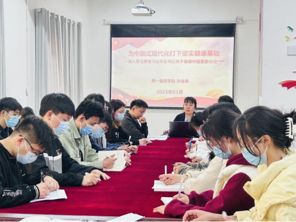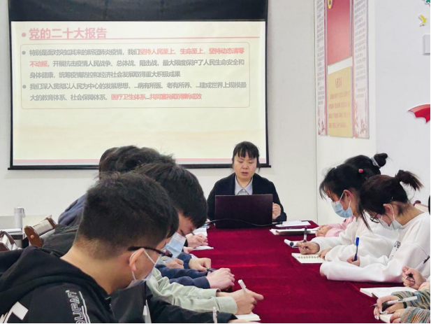 为深入学习贯彻党的二十大精神,教育引导广大青年不忘初心跟党走,深学笃行敢作为,2023年3月15日17:40,必一运动官网临床医学专业员工第十一党支部在新蒲校区博乐楼二楼党员活动室开展了“党的二十大精神”专题宣讲,公司团委书记、就业办主任孙会英主讲,支部全体党员及员工入党积极分子参加。