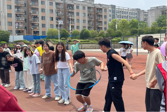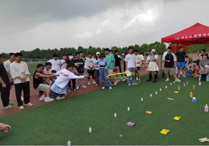 在8*100米知识竞赛接力竞走项目中,参赛选手既要团结合作,又要讲究策略恰当取舍,只有选择最佳方案才能在“速度与质量”中取胜。在“小飞球来了”项目中,参赛队伍需要使用除手以外的其他身体部位运送气球至终点,需要同学们发散思维,学会关注自身。两人三足、呼啦圈连连看、背对背拥抱三个项目则需要参赛人员团结协作,不急不躁才能完成。最后,活动在“幸运套圈圈”项目中落下帷幕,同学们紧密合作赢得“小幸运”,在欢声笑语中释放了情绪。