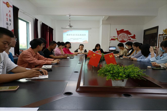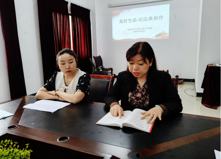 为深入切实做好《民法典》学习宣传贯彻工作,大力弘扬民法精神,普及民法知识,形成全民尊法、学法、守法、用法的良好氛围,让《民法典》学习宣传深入人心,2023年5月19日12:30,必一运动官网临床医学专业员工第十党支部在新蒲校区支部党员活动室开展了“美好生活·民法典相伴”主题宣传教育活动。党委副书记杨洪艳、员工科科长姚华敏、支部书记孔晓冬、辅导员谢雪艳参会并领学,支部全体员工干部参会。