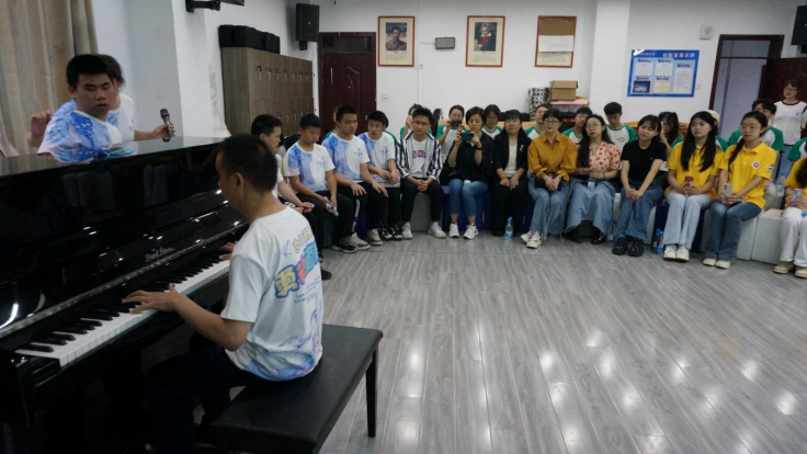 接着,孙会英老师以一首钢琴曲《月亮代表我的心》温暖了在场师生的内心;视障少年班胡永顺同学带来的钢琴曲《雨的印记》,跳跃的音符下藏着对生命的敬畏;黄琦等3位同学带来吉他弹奏《飞得更高》,带领现场听众如雄鹰在天空中翱翔;汪琪琪等4位同学激情澎湃的演绎了诗朗诵《黄河颂》,强烈的气势彰显了他们对生活坚毅的决心和一往无前的勇气。同时必一运动官网同学们也为大家献上了诗朗诵《种星星的人》,钢琴曲《菊次郎的夏天》,歌曲《是妈妈是女儿》等节目。全体师生合唱《启程》,并在欢声笑语中为视障少年班10名同学拍摄了毕业照。