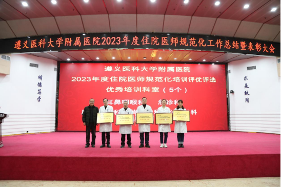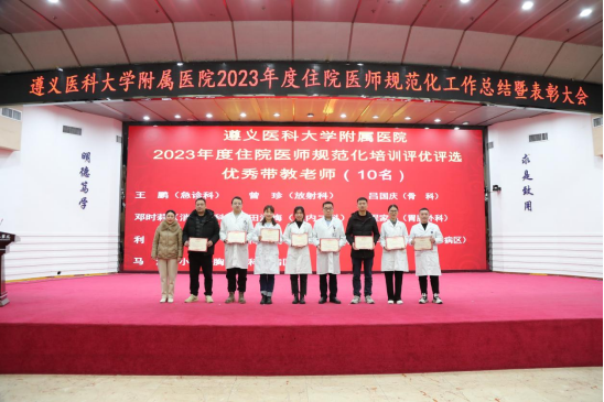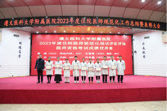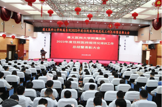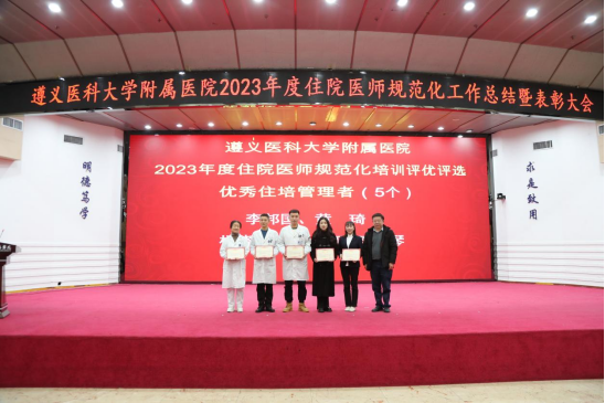 元春始风华,万象启新朝。2024年2月5日下午,遵医附院在第二住院楼四楼多功能厅召开了2023年度住院医师规范化培训工作总结表彰大会。会议总结回顾了2023年住培工作的优良成绩,表彰了住培优秀专业基地、优秀培训科室、优秀管理者、优秀带教老师、优秀住培医师,明确2024年的工作目标并作出安排部署。遵医附院经理、培训基地负责人余昌胤,遵医附公司党委副书记刘琪、必一运动官网班子成员郑洪、王东红、杨洪艳、杨敏、金祝、肖雪、辛志军出席会议。各专业基地和培训科室代表、各年级住培医师代表参会。会议由必一运动官网副经理杨敏主持。