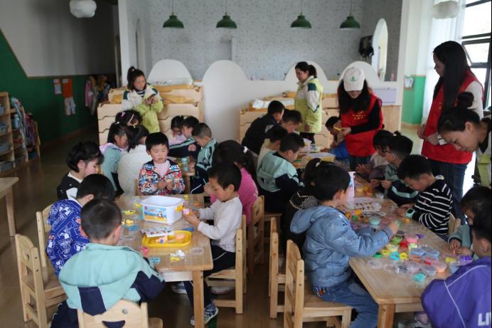 浇灌童年之花,奏响欢乐之歌。3月21日下午15:00,由主修心理学的辅导员胡红梅老师主导,5名教师和部分志愿者协助,在小区内“教子有方”幼儿园开展了一场幼儿心理团辅活动,共计30余名幼儿园小朋友参与。在心理团体辅导中,胡老师利用游戏的趣味性,发挥奖励机制并结合学科教学内容对孩子们实施行为训练,不断提高其控制行为、调节情绪的能力;通过分组合作捏制手工艺品,引导幼儿进行情感表达和沟通,帮助幼儿建立积极的人际关系和情感体验,促进幼儿的心理健康成长。