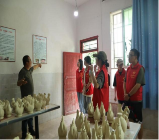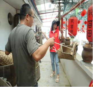 作为红军长征途经之地,这里见证了红军的英勇战斗和革命精神。一位致力于土陶艺术在现代审美和市场需求的推动者杨波向我们讲述了《蒲家洞救红军》、《红军张家才故事》《忆父亲李先帅》的故事。在这些故事里,我们更加深刻的了解革命的艰辛,从讲述者的语言中体会到军民一条心这种浓厚的情感。随后,我们还参观了以土陶为主题的藏宝馆,见识了旧时的斗、梨等农耕器具的使用以及功能,花茂的土陶不是浮于表面的美丽,而是承载着浓厚的乡土情怀和文化底蕴。随后,我们观摩了草鞋的编织技艺,了解了草鞋编织的流程并体验制作了草鞋的劳动快乐,感知了草鞋在红军长征途中的重要地位。