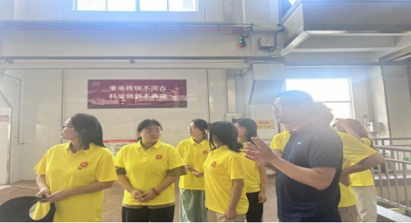 7月15日下午2点,实践团队进入酒香四溢的茅台镇,并在国台酒业进行参观学习。在国台酒业副总经理向明晰的介绍下,同学们了解了酱香酒的制曲、发酵、蒸煮、取酒一系列工序,同时明白“12987”酿造工艺的深刻内涵。