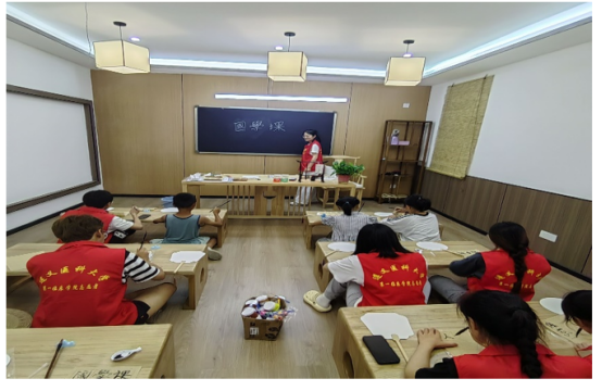 “乡野童梦,普语启航”社会实践团队的志愿者们立足于新时代社会主义精神内涵,通过内容丰富、形式多样的教学安排,并与中国优秀的传统文化相结合,帮助孩子在学中玩、玩中学,陪伴孩子们度过一个安全有保障、健康有呵护、情感有抚慰的快乐假期。课程内容包括安全成长类教育课、非遗手工课、红色文化课、经典国学课、暑期作业辅导等。本次活动的开展得到了社区工作者和家长的大力支持,课程开展中家长们纷纷赞不绝口:“把孩子送到这里,有志愿者和老师对小朋友呵护和管理,还能接触和学习到各种知识,交到许多朋友,非常感谢!”。新蒲街道六角井社区居委会副主任杨中平表示本次活动为今后社区活动开展拓展了思路,社区工作人员未来也将根据孩子的兴趣爱好,在本次活动的基础上不断丰富课程内容,持续提升服务能力,切实让孩子们在欢快活泼、轻松愉悦的氛围中,收获知识、增长智慧,度过一个欢乐充实的假期。