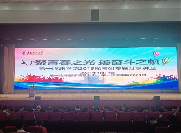 会上,成功上岸华中科技大学的汪芋丞学长讲述了关于如何择校的心得,强调尽早明确目标专业,以专业为导向选取目标院校,并全面掌握目标院校的分数线、报录比、调剂情况等;成功考取电子科技大学的袁天星学姐则建议大家按部就班、脚踏实地、准确定位、自律努力、保持健康的心态,下一个成功上岸就是你;被重庆医科大学录取的龙凯迪学姐讲述了自己考研的曲折,强调考研过程中心态和选择的重要性,并从考前准备、备考规划等给与详细的讲解;成功推免海军军医大学的刘琨学长分享了如何规划保研、剖析“专硕”“学硕”的区别,并叮嘱学弟学妹要及早制定详细的学习计划,确保学习生活两不误;留在本校继续读研深造的李彤学姐则分享了备考过程中精细化刷题的方法,提高探究题目的“颗粒度”,强调备战过程中要调整好心态,要有“吐槽”的朋友,相约前行。