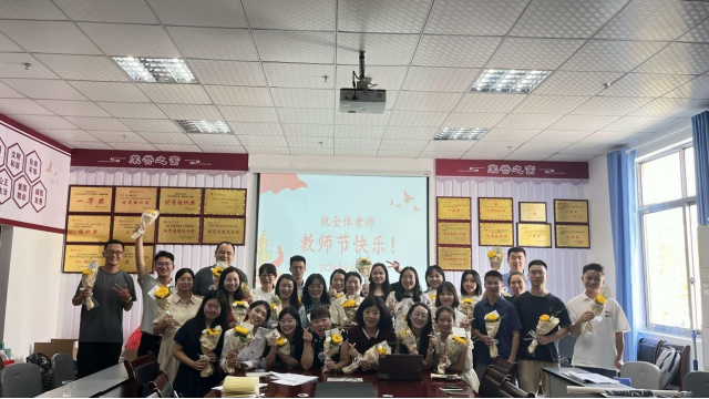 会议室里,员工们手里攥着的花束散发着的淡淡花香犹如老师慈祥的目光,当员工们将代表感恩的贺卡和向日葵花束献给老师们时,当大家齐声的祝福老师教师节快乐时,相机按下了快门,这一刻被定格,将被永远铭记。我们的学习之路还在进行,老师陪着我们走过一程又一程,每一段都是成长留下的深刻印记。
