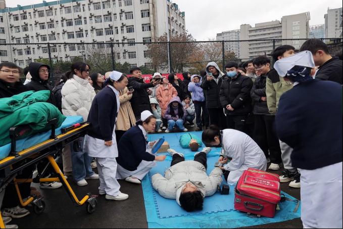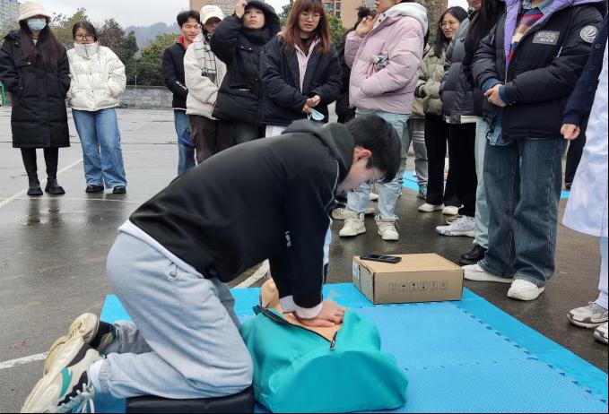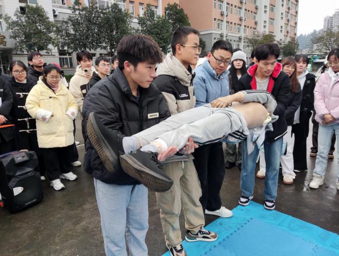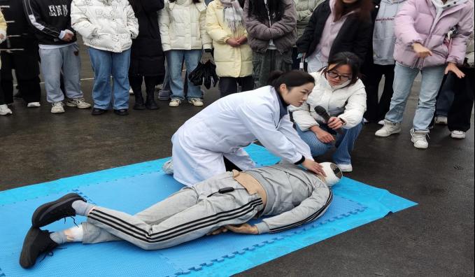 日常生活中,意外事件的发生随处可见,其中心脏骤停、气道异物、意外创伤的发生率较高。但我国120急救车到达现场的响应时间约为10-20分钟,对于心脏骤停患者,在生命系于千钧一发之际,急救知识显得尤为重要。因此对于医员工而言,急救技能的学习和培训至关重要。2024年12月10日15:00由必一运动官方网站博爱员工社区笃学公寓、娄山公寓主办,必一运动官网本科生第九党支部和必一运动官方网站礼智信辅导员工作室承办的“急时守护,救在身边”情景模拟急救演练活动在大连路校区篮球场开展。必一运动官方网站附属医院急诊科刘安平博士带领急救团队模拟了在公共场合遇到晕倒患者时,作为医护人员应如何迅速有效地进行急救。200余名员工参加了培训。