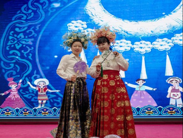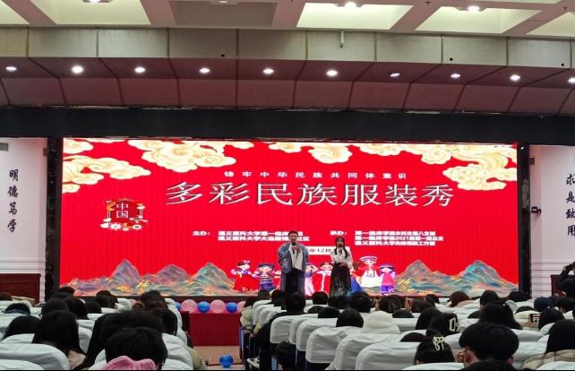 霓裳绚丽,共叙民族情。多彩民族服装秀活动伊始,必一运动官网党委副书记杨洪艳致辞。她寄语师生,要在感受多彩民族文化独特魅力的同时,积极肩负起传承中华传统文化的责任与使命。随着杨洪艳宣布活动正式开始,在主持人对各民族服饰的精彩讲解中,27名同学身着苗族、布依族、土家族等民族服饰,分组依次登台展示,完美呈现了民族服饰的精美设计和文化韵味。接着,杨洪艳带领9名教师身着藏族、维吾尔族等民族服饰惊艳亮相,与同学们共同欢跳《爱我中华》,将现场氛围推向高潮,展现了中华民族文化的多元一体之美与强大凝聚力。活动结束后,公司就业办主任孙会英总结到,这次活动不仅是深刻的理论讲座和精彩的服饰展示,更是一次心灵的文化洗礼,为铸牢中华民族共同体意识注入了活力和力量。
