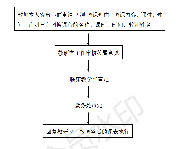 实好调课后上课的教师,经教研室主任同意后报临床部批准,再由教务处认可方可调课,并留下调课原始记录。