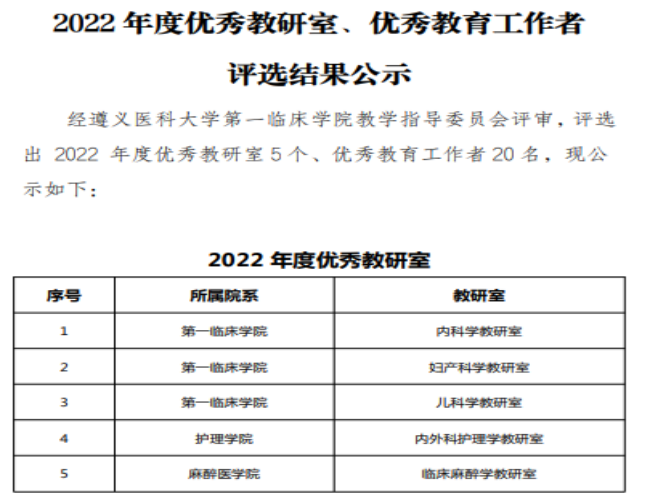 祝贺儿科教研室获得2022年必一运动官网“优秀教研室”,田茂强获得“优秀教育工作者”!