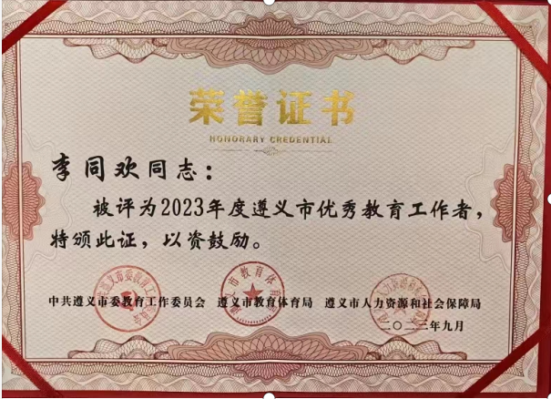 儿科教研室李同欢教授荣获“2023年遵义市优秀教育工作者”!