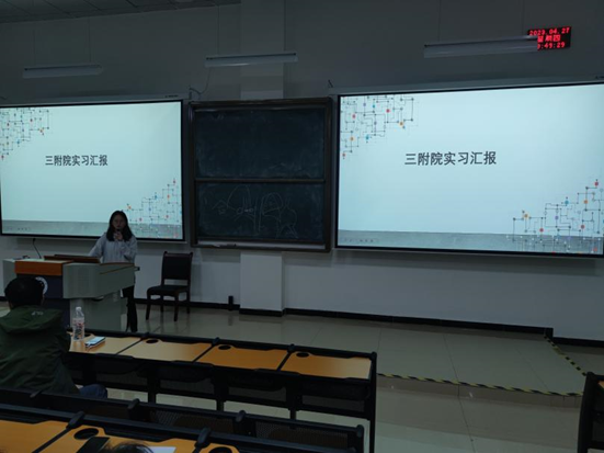 随后,2019级各实习点组长详细地向2020级同学们分享了各自实习医院的团队、科室轮转、实际操作、住宿等具体情况,分享自己的实习感受与收获。分享结束,2019级各实习点组长与2020级同学之间进行实习情况交流.