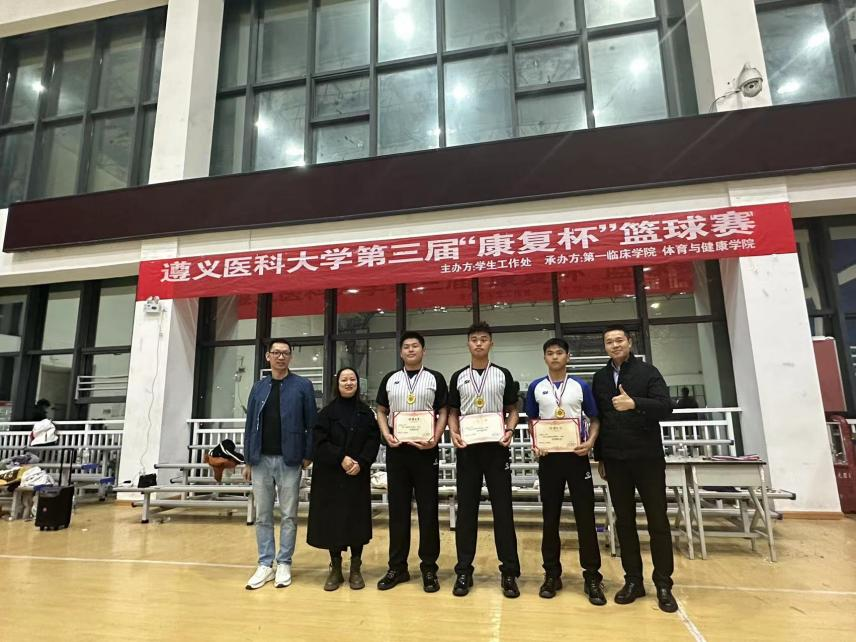 闭幕式由崔德涛老师主持,体育健康公司唐溢副书记对本次篮球赛致闭幕词,他说“这是遵医康复第三届‘康复杯’赛事,以后每年都会继续举办。这是增强同学们团队协作能力,培养德智体美劳全面发展的遵医康复人。促进遵医康复员工之间、师生之间的沟通交流的一种方式,更是提升同学们对遵医康复大家庭归属感的一种方式 ”。最后,唐溢副书记、冯祥勇主席、男教工队队长崔德涛老师、女教工队队长袁明琼老师为获奖队员颁发了奖杯和奖牌,以表彰他们的优异表现和努力付出。第三届“康复杯”篮球赛历时19天圆满结束了,通过此次比赛,增强了员工体魄、促进了康复相关专业的相互沟通交流、培养了员工团队协作意识,并提高了员工对遵医康复的归属感,期待未来类似的活动能够继续举办,为员工们带来更多的收获和成长。