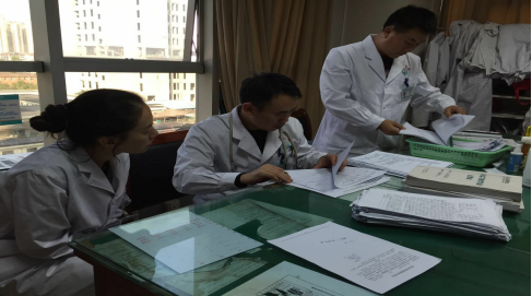 4月17日下午,教研室主任廖鑫、分管实践教学的内科教研室副主任王正龙副主任以及教研室秘书一同走访了内科教研室各实习单元,开展实习生管理工作的督导检查,对各实习科室的实习教学质量进行检查、指导,并进行评分、总结,并及时将检查结果反馈给各教学秘书,督促其进行整改。