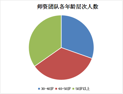 教师团队在2018年的平均年龄为41岁,30-40岁教师数量最多,队伍年龄梯度合理且年轻化。