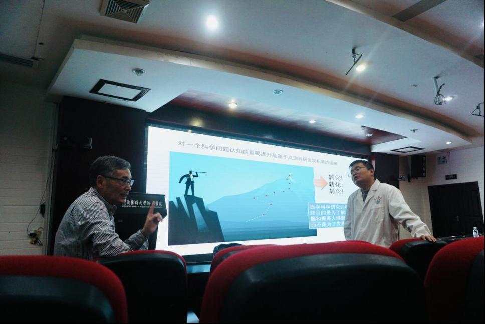 杜晓军教授首先围绕“如何选择和设计一个科研课题”展开精彩讲授,他通过生动的案例、全新的理念及新颖的视角,深入浅出地为大家剖析了如何设计一个“有灵魂”的课题,并就如何建立稳定持久的研究方向、如何掌握阅读文献的技巧、如何提出创新性的科学问题、如何结合可用的数据库、如何坚持问题导向等进行了全面讲解。同时,杜教授特别强调了科研成果转换为临床应用的重要性,指出了基础研究向临床转化的关键环节。